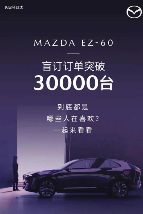 還沒正式上市,訂單就先爆了!長安馬自達剛剛官宣,旗下全新純電/增程SUV——EZ-60,自上海車展開啟盲訂后,訂單量已經瘋狂突破30000臺大關。