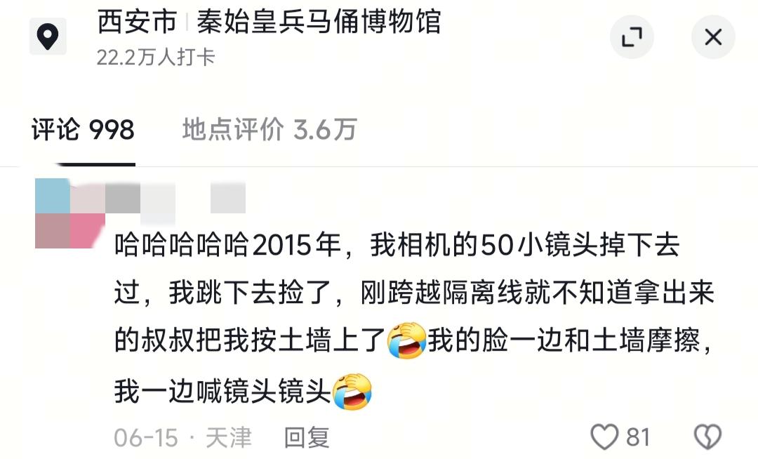 暑期旅游高峰來到,秦始皇兵馬俑博物館迎來大量客流。然而,當(dāng)游客摩肩接踵,一種意外狀況悄然增多——隨身物品“易主”,墜入兵馬俑坑,網(wǎng)友調(diào)侃:“秦始皇也沒想到,兩千年后還有人給他送陪葬品。”