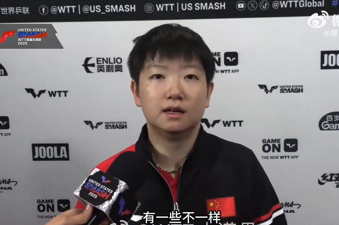 這次WTT美國(guó)大滿貫用的是德國(guó)品牌的球臺(tái),很多球員都吐槽這個(gè)球臺(tái)表面太光滑了。孫穎莎、王楚欽、林詩(shī)棟和王曼昱這些國(guó)乒主力都公開表示不適應(yīng)。孫穎莎說(shuō)"球臺(tái)跟以前的球臺(tái)有一些不一樣",王楚欽甚至說(shuō)球臺(tái)會(huì)晃動(dòng)。平野美宇的中國(guó)教練張成形容這個(gè)球臺(tái)像"雨天開車",這個(gè)比喻挺形象的。