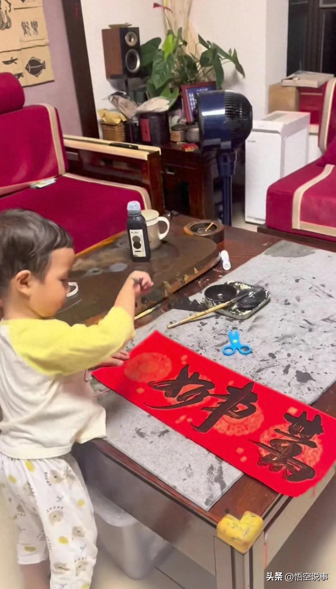 家人們,刷到個(gè)兩歲十一個(gè)月的娃寫(xiě)對(duì)聯(lián),我直接看呆!這小孩叫朗朗,拿毛筆跟玩似的,在紅紙上一筆一畫(huà)寫(xiě),寫(xiě)完還美滋滋地把對(duì)聯(lián)鋪地上欣賞。咱今天就嘮嘮,這么小的娃搞書(shū)法,對(duì)文化傳承意味著啥?