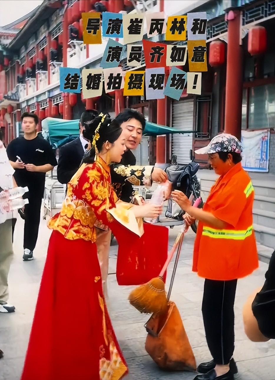 新郎叫崔丙林,河北人,比她大兩歲,職業是演員兼導演,拍過《蘋果紅了》和短片《來咧》,名氣不算太大。兩人距離倒不遠。