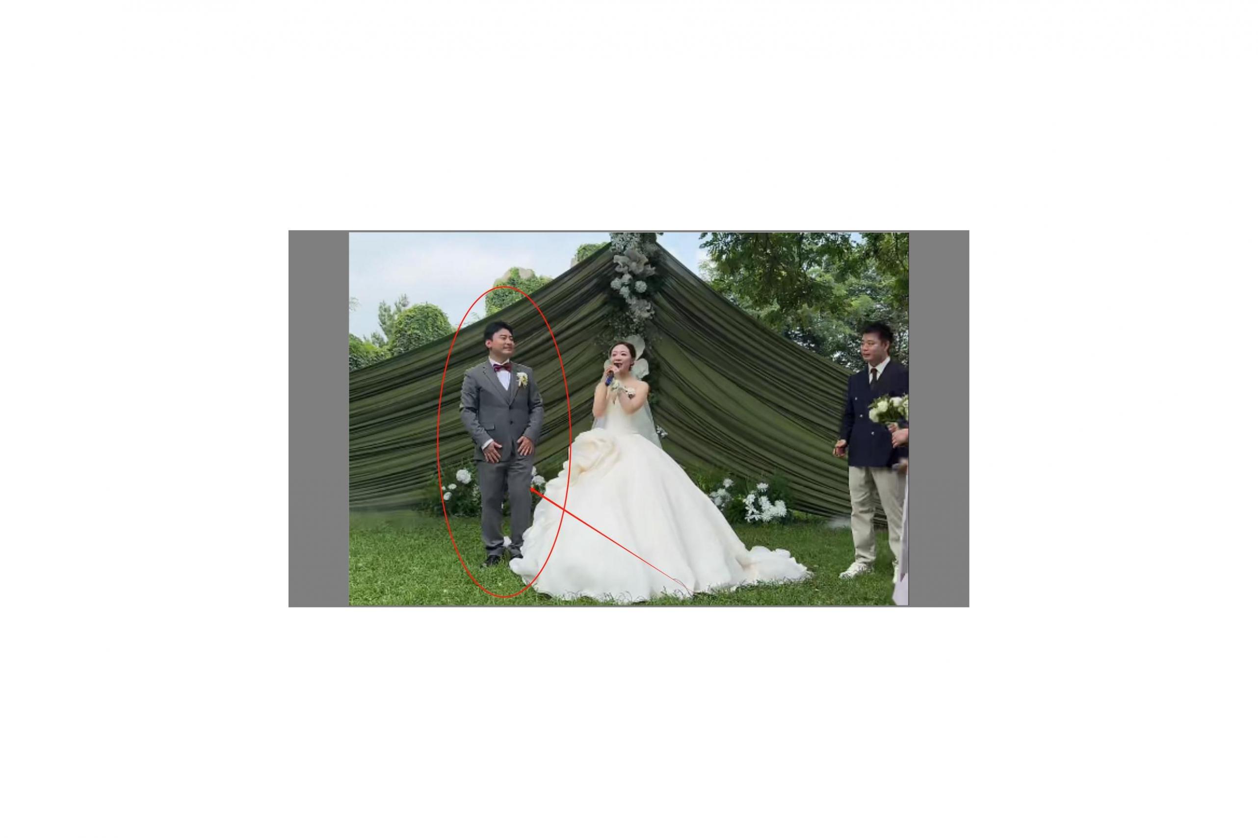 崔丙林在臺上給丈母娘表忠心,嘴角上揚,姿態顯得有點隨意。玩游戲時他忙著換位置,對著直播間唱歌逗樂,出汗了就補妝,努力扮帥,但顯得有點刻意,有點冷落新娘。