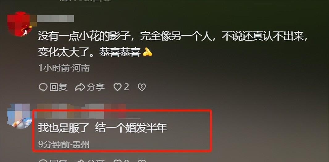 說實在的,要不是她反復提自己是“小花”,很多人根本認不出現在的她,也不會關注這場婚禮。