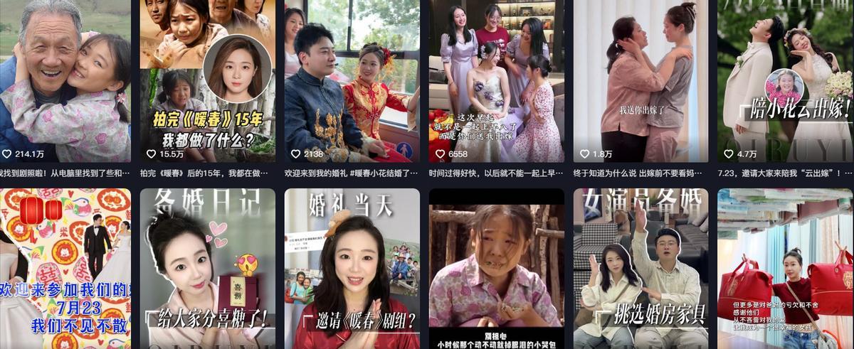 齊如意結婚這事,之前鋪墊了挺久。從求婚、訂婚到買新房布置,她發了好多條視頻,有點刷屏的意思,每條都掛著“《暖春》小花”的名頭。