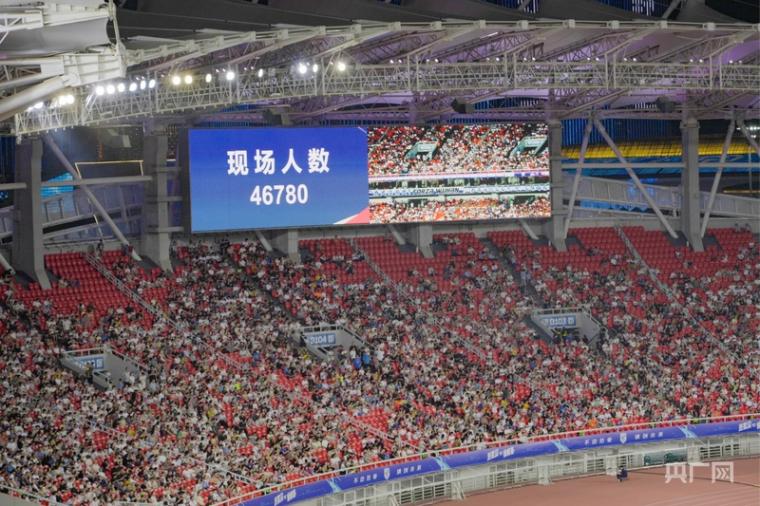 4.6萬余名觀眾在漢超揭幕戰現場(央廣網記者鄧子依 攝)