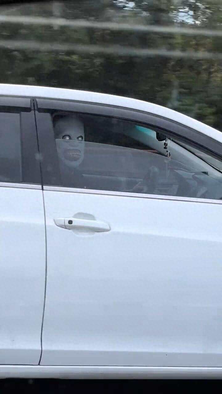 8月24日,網友曝光稱在長深高速有人戴恐怖面具故意驚嚇過路車輛。視頻顯示,兩輛車行駛中時有并行,戴面具的人坐在一輛滬A牌照的車上,此人開著車窗微微起身看向過路車輛,然后拉起車窗又轉頭注視。