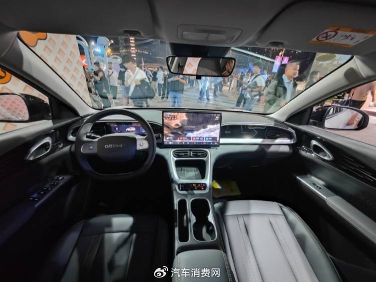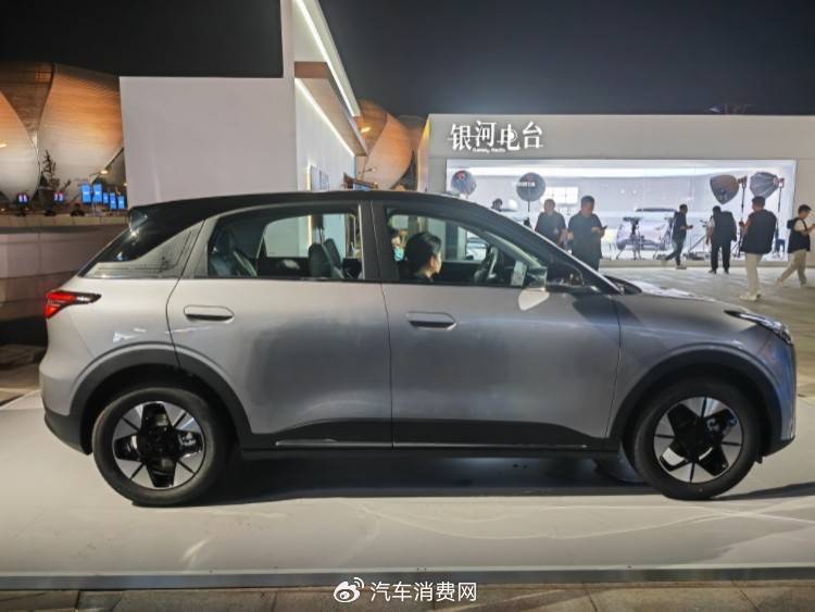 側(cè)面來看,新車擁有平滑流暢的線條,并采用了雙色車身設(shè)計,時下流行的懸浮車頂設(shè)計手法也沒有遺漏。此外,新車還擁有前后隆起的輪眉線條、半隱藏式車門把手、低風(fēng)阻輪圈。軸距為2650mm。