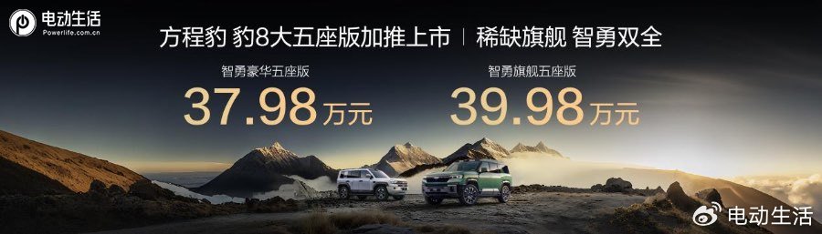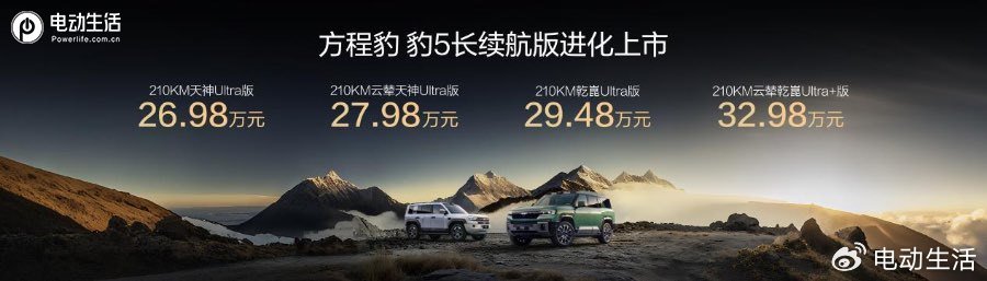 10月20日,方程豹汽車“長續航版”煥新上市,價格26.98-32.98萬元;大五座版加推上市,價格37.98-40.78萬元。方程豹以“人人可野·擁豹新生活”為核心主張,以豹5的10萬臺銷量達成,以及品牌的20萬臺銷量達成,宣告著電驅越野時代的全面到來。豹5持續蟬聯硬派越野銷量冠軍,登頂“越野新王”,豹8則以引領40萬級高端新能源SUV的姿態成為比亞迪華為聯手打造的“稀缺旗艦”。本次方程豹豹系列產品,實現了DMO平臺的DMO+升級、華為乾崑智駕的ADS 4升級、以及比亞迪智慧生態等多項頂級核心科技的全面升級,并帶來續航、安全、舒適、操控等全維度的系統性優化,將好技術人人可享進行到底。