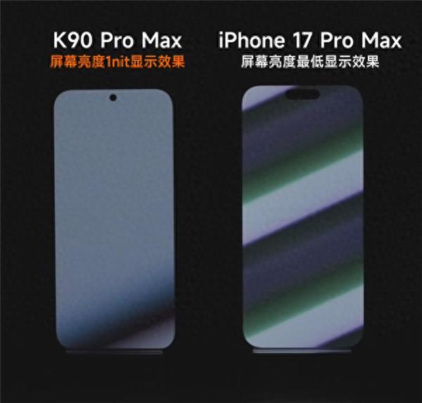 小米合伙人盧偉冰今晚還曬出了REDMI K90 Pro Max與iPhone 17 Pro Max屏幕對比,K90 Pro Max支持了1nit極暗光護眼,在1nit低亮度下無頻閃、顯示均勻,護眼效果碾壓級領先。