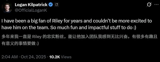 谷歌DeepMind產品負責人Logan Kilpatrick,更是連發好幾條推文。