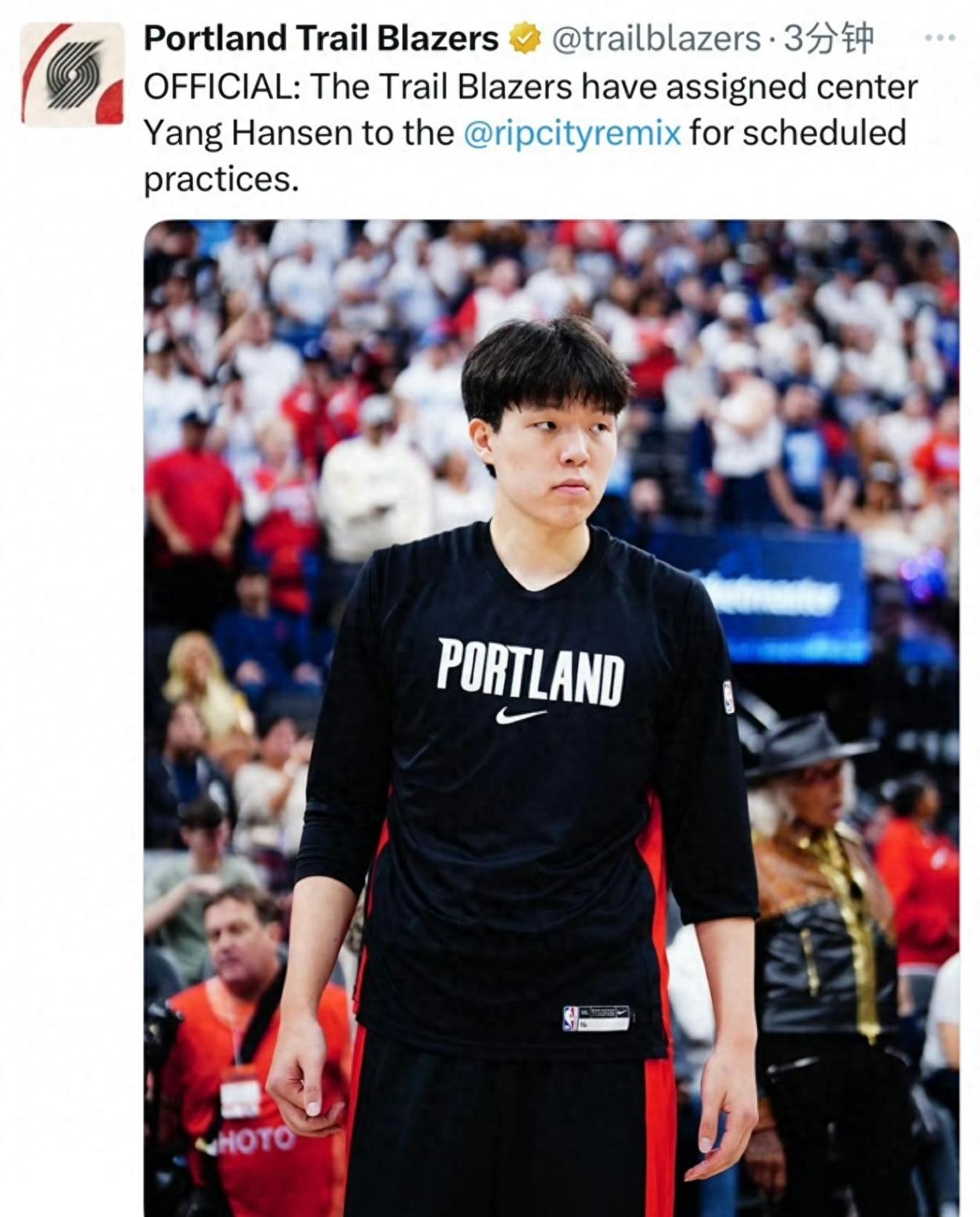 波特蘭開拓者官方在社交媒體上宣布,已經將隊內新秀中鋒楊瀚森送至發展聯盟撕裂之城混音隊進行日常訓練。