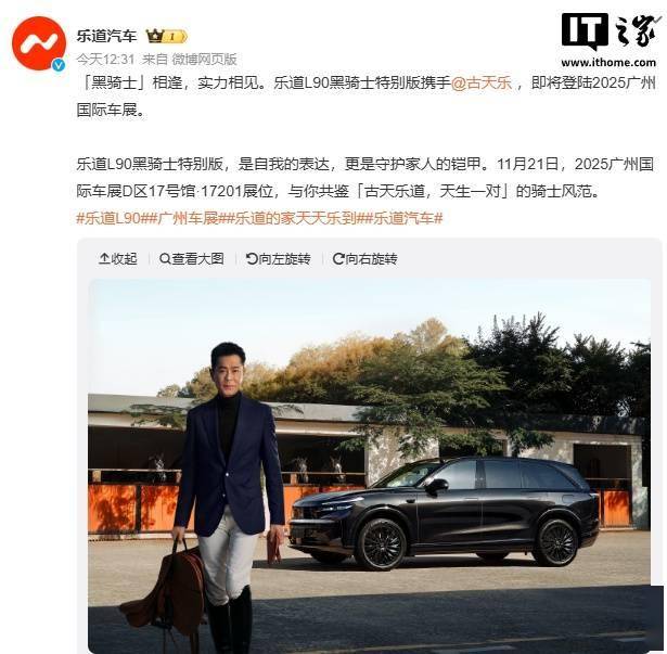 11 月 20 日消息,蔚來旗下汽車今日宣布, 黑騎士特別版攜手古天樂,即將登陸 2025 廣州國際車展(明日開幕)。