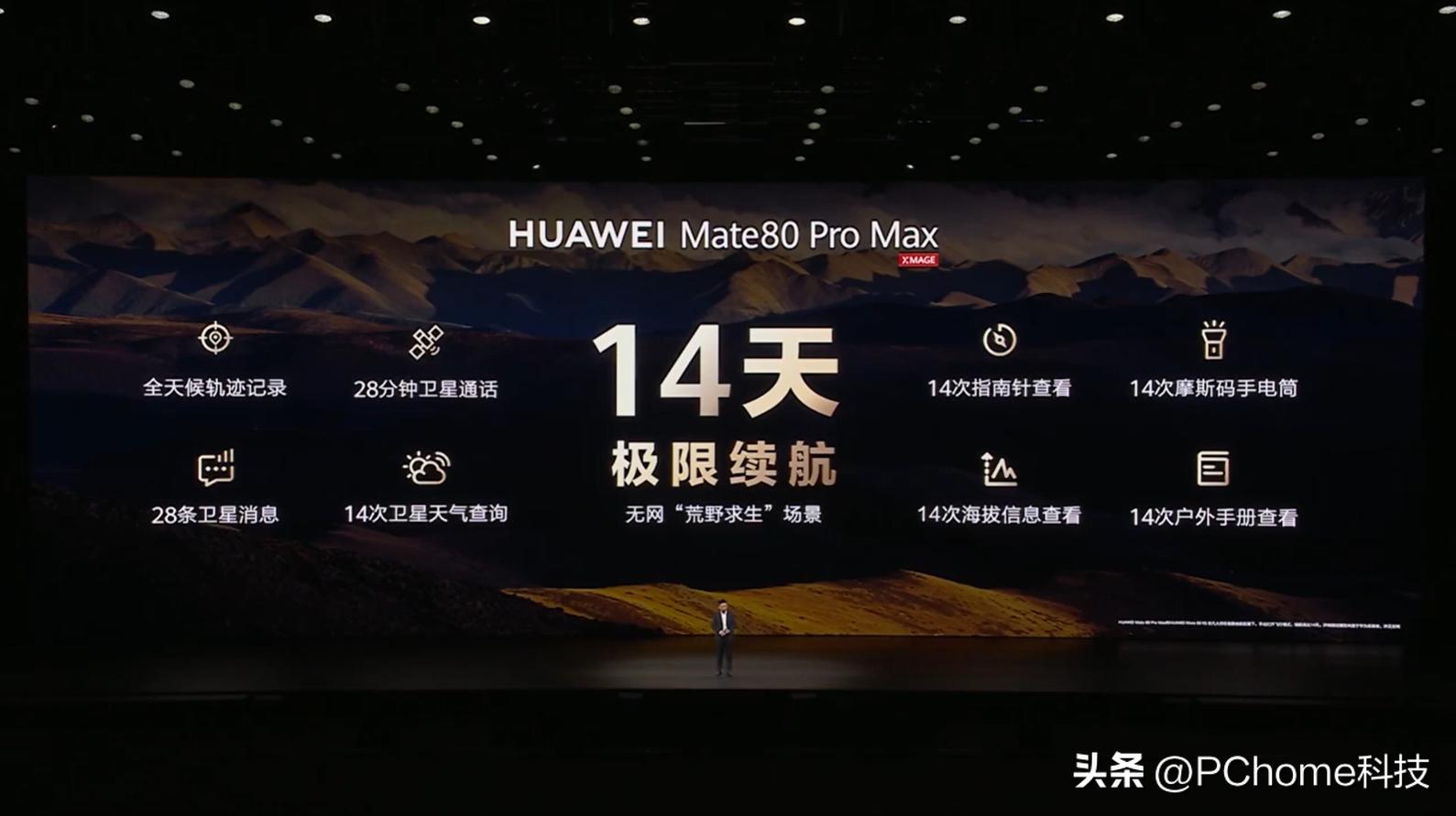 在此基礎上,華為Mate 80 Pro Max更提供14天極限續航,支持全天候軌跡記錄、28分鐘衛星通話、28條衛星消息、14次衛星天氣查詢等功能,全方位保障用戶戶外探險。