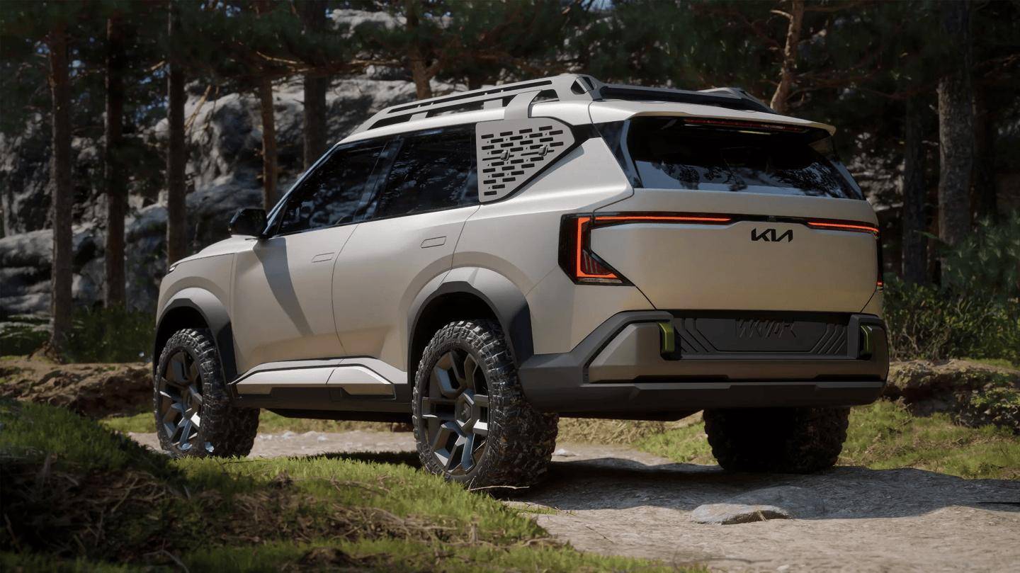 這款概念車由起亞中國造型設計團隊開發,相比現款 EV5 采用了更高的車身和更大尺寸的全地形輪胎,提升的懸掛系統使其擁有更高的離地間隙,整體姿態更為自信。